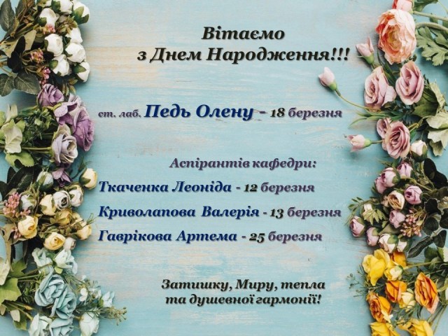 Викладачі та співробітники кафедри сповідують принципи академічної чесності та професіоналізму, володіють усіма професійними компетенціями, творчо підходять і вміють мотивувати студентів.