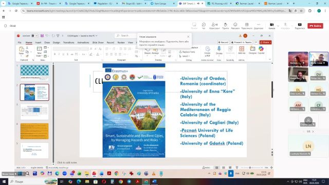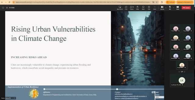 9-10 березня 2026 р. студенти, аспіранти та викладачі кафедри соціально-економічної географії і регіонознавства імені Костянтина Нємця взяли участь у серії лекцій в рамках змішаної інтенсивної програми Erasmus «Розумні, сталі та стійкі міста шляхом управління небезпеками та ризиками» / «Smart, Sustainable and Resilient Cities, by Managing Hazards and Risks», організованою спільно Університетом Орадя (University of Oradea, Румунія), Енським університетом «Кора» (University of Enna «Kore», Італія), Середземноморським університетом Реджо-Калабрії (University of the Mediterranean of Reggio Calabria, Італія), Університетом Кальярі (University of Cagliari, Італія), Познанським університетом наук про життя (Poznań University of Life Sciences, Польща), Гданським університетом (University of Gdańsk, Польща).