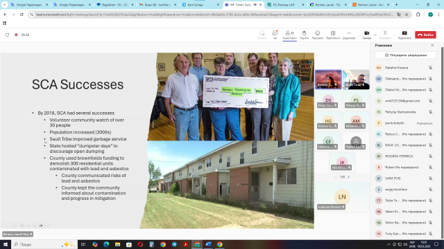 - Dr. Laurel Berman (Університет штату Іллінойс в Чікаго / Університет ДеПоль / University of Illinois at Chicago/DePaul University, США) – Risk Assessment Approaches to Site Remediation: KI Sawyer former military brownfield / Підходи до оцінки ризиків для відновлення ділянки: занедбаний колишній військовий об’єкт К. І. Сойєра.