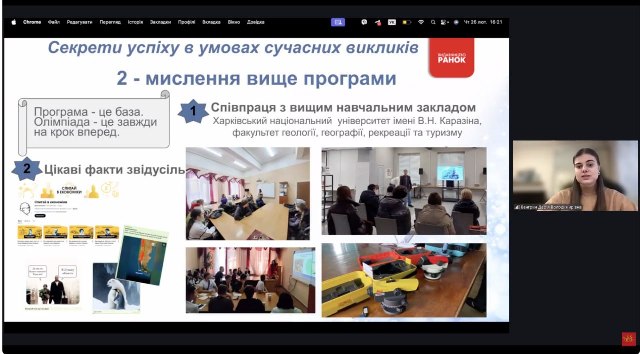 У своїй доповіді “Як виростити інтелектуальне майбутнє в умовах сучасних викликів” Дарʼя підкреслила необхідність шкільним закладам підтримувати партнерсто з вищою школою, та подякувала факультету та кафедрі за багаторічну співпрацю.
